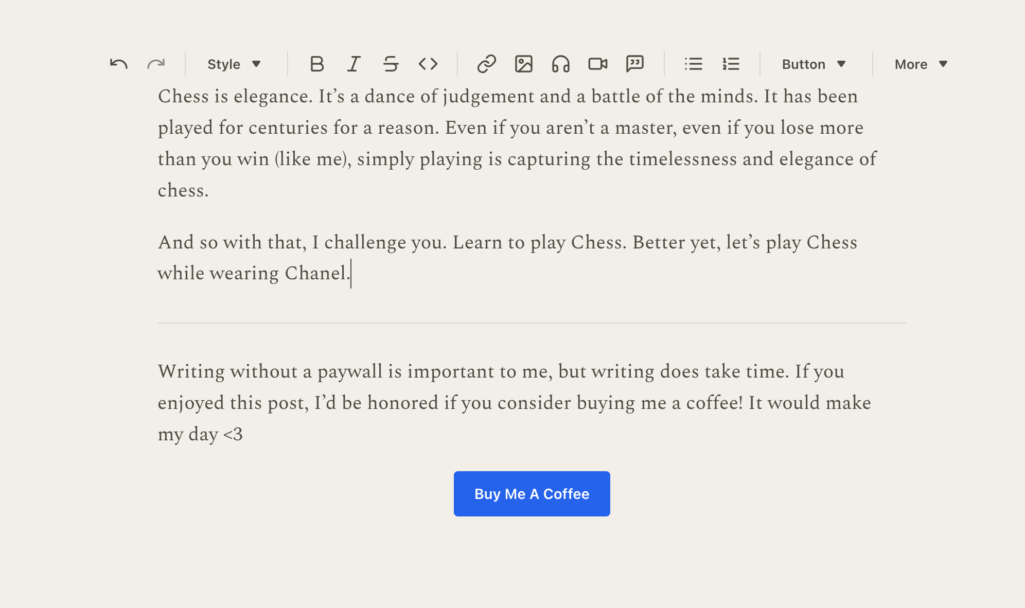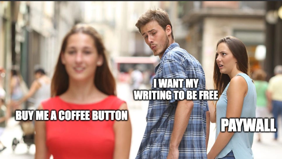 I feel seen. Like you, I felt bad about adding a paywall and turned it off completely. I like the idea of “buy me a coffee” in my case a latte😀I’ll try it later today. Will anyone use it, maybe not but it doesn’t hurt to try. Thanks for the suggestion!